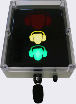 The green light is on all the time to remind people that the noise is being monitored. When the sound level gets close to the trigger level (within 5 dB) the yellow light comes on as a warning. As soon as the level goes above the trigger level the red light comes on - it is time to act to reduce the levels or deploy hearing protection.